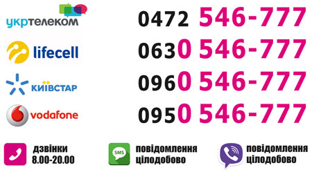 ОГОЛОШЕНЬ за ТЕЛЕФОНОМ, через SMS-ПОВІДОМЛЕННЯ та Viber